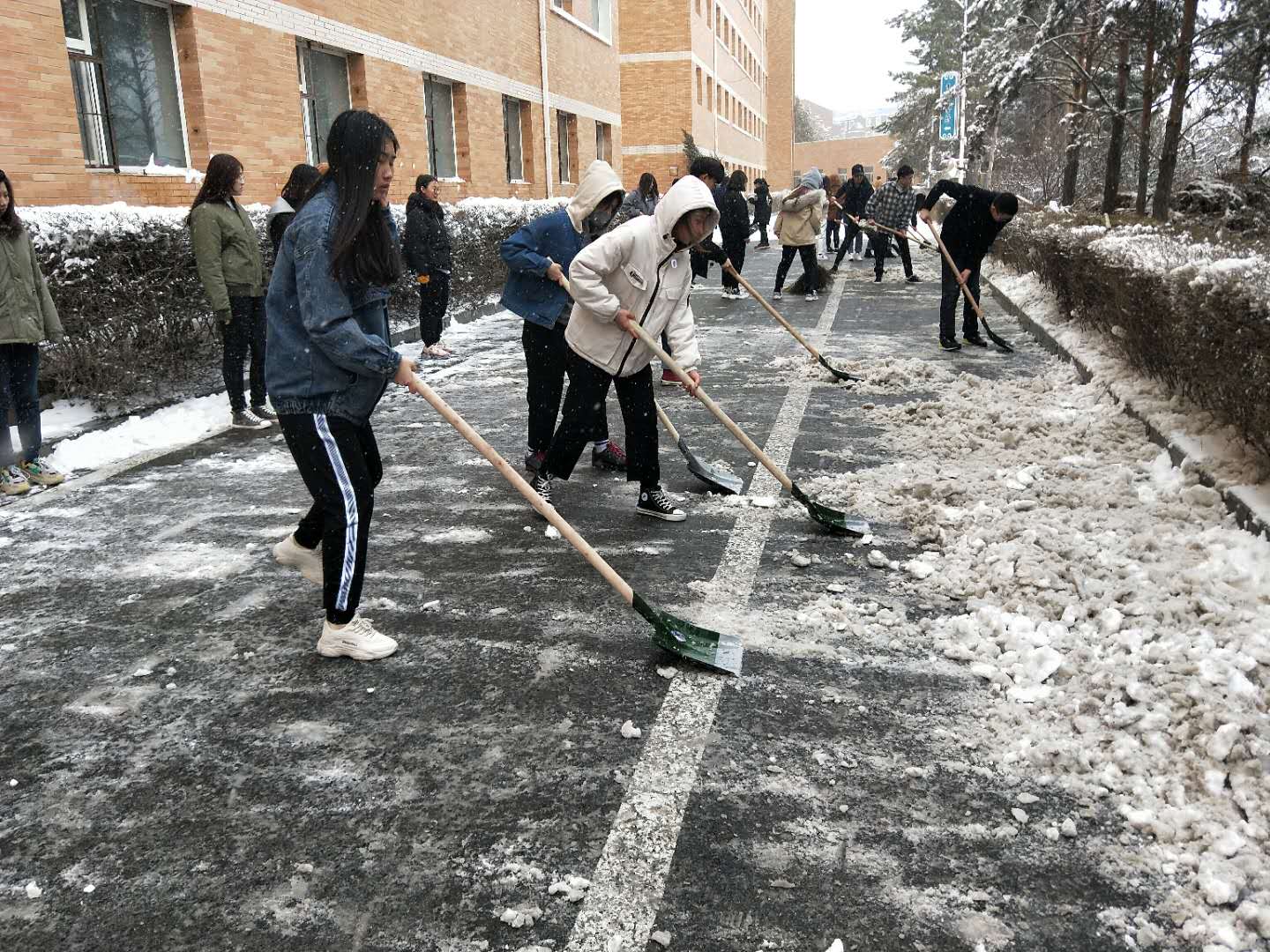 新学期的第一场大雪,将校园装点成一个白色世界。为了尽快清除大雪,确保全体师生的安全和便利,乐天使的同学们在辅导员葛万权的带领下于3月21日下午开展了清雪行动。