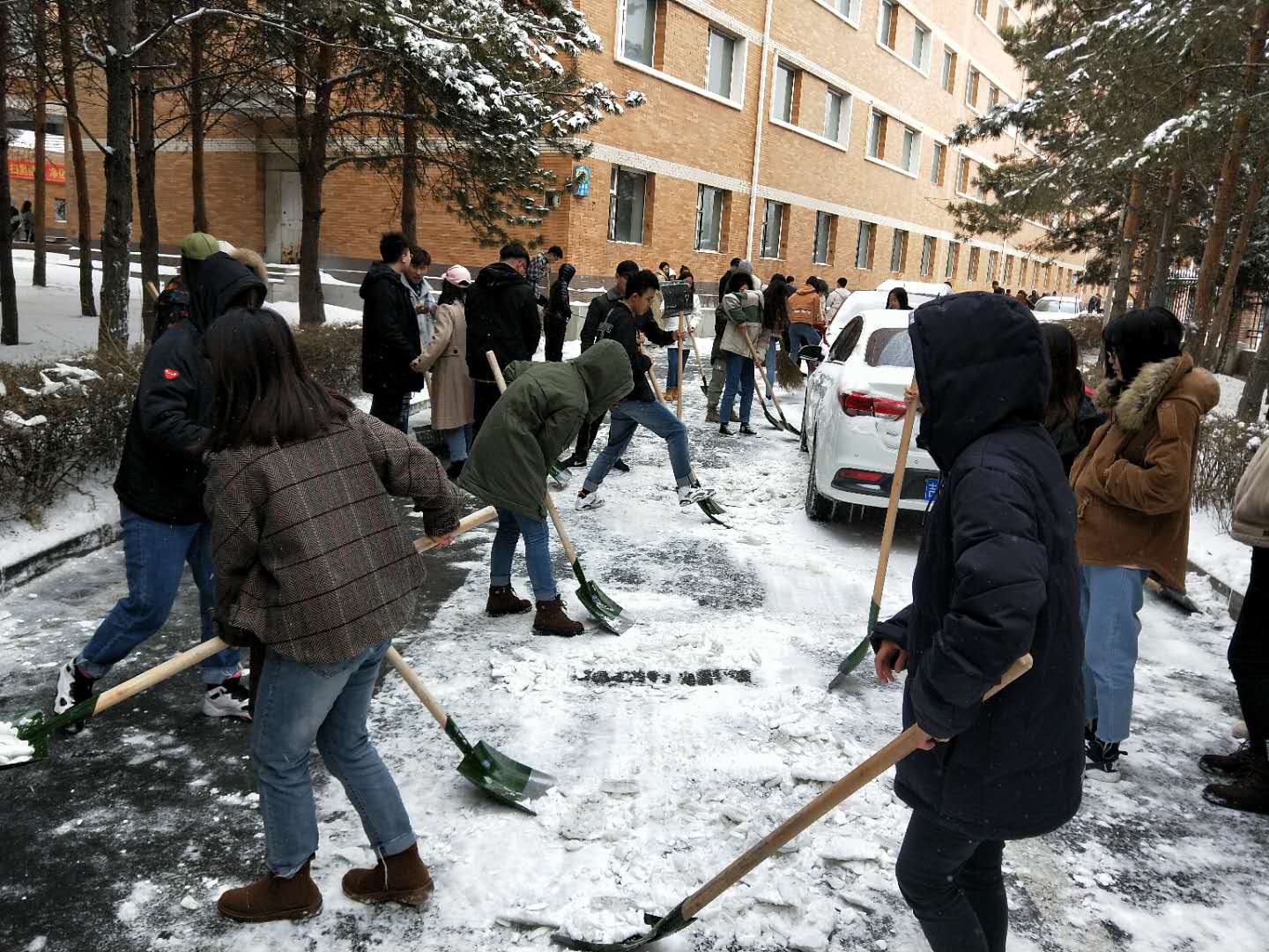 下午一点半,公司的同学们积极行动起来,以班级为单位开展分担区扫雪行动,清扫主干道路和公共场所内的积雪,美化校园,方便出行,从扫雪这件小事做起,传递正能量。经过一个多小时的奋战,将道路上的积雪全部铲除,为出行的师生、过往的车辆开辟了一条温暖的通畅之路。