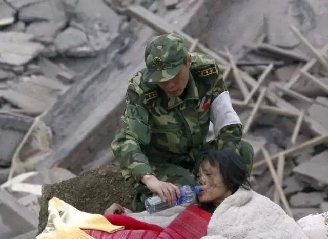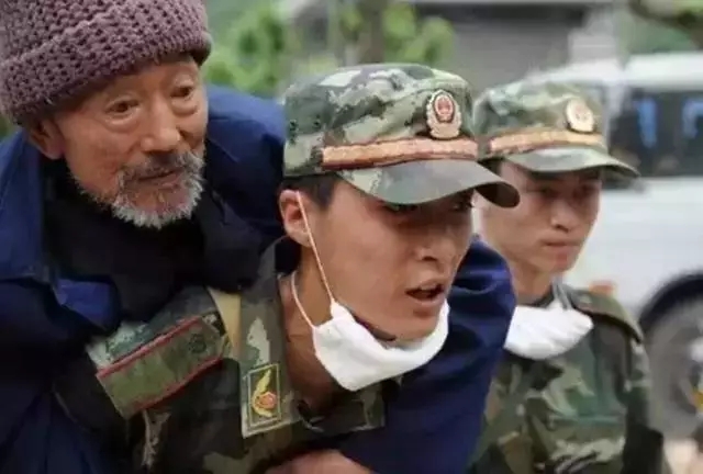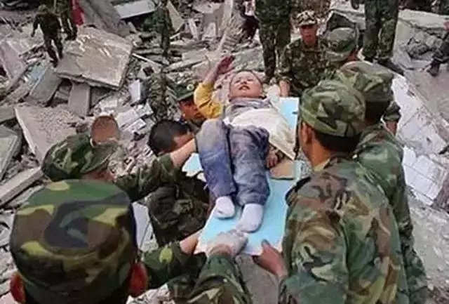 这个孩子叫郎真,他被救出来后,在担架上给战士们敬了一个礼!