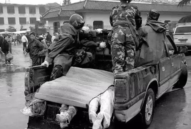 在地震中痛失妻子的男子用绳子将妻子的尸体绑在背部,送她去太平间。在极大悲痛的折磨中,他努力给予自己的妻子死后些许的尊严。