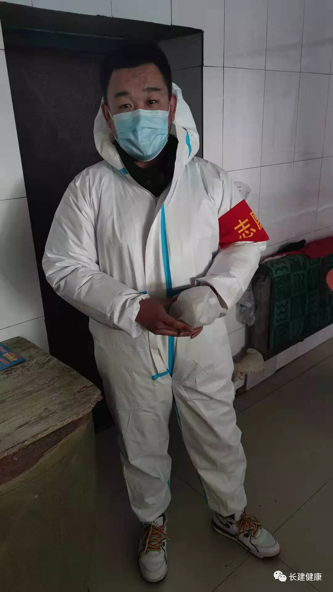 马柏君,共青团员,护理1901班员工。吉林省长春市德惠市惠发街道志愿者,主要负责维护秩序,测量体温等工作。他说:“作为新时代老员工,无论何时,我们都应肩负起自己的使命与担当。疫情当前,人人都是防疫员,个个都是战斗员。希望能尽绵薄之力,早日战胜疫情。”