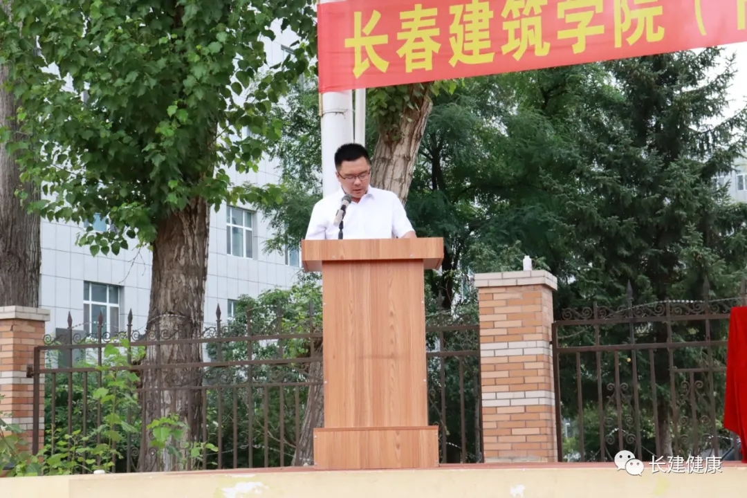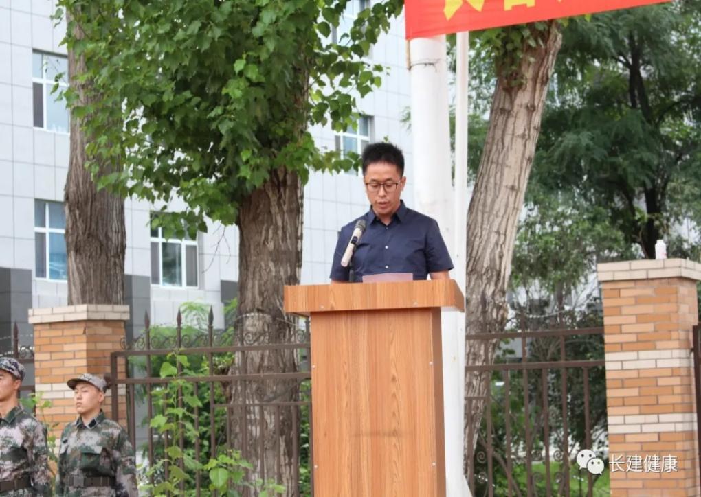 大会第四项乐天使直属党支部书记孙一平军训动员讲话。他强调:“开展大型军训训练工作是落实党中央重大战略决策,是实现中国梦和强军梦的必然要求。同时向21级新生们提出两点希望:一,坚定信念,在红色血脉中夯实信仰之基。习近平总书记在庆祝中国共产党成立100周年纪念大会上指出:未来属于青年,寄希望于青年,新时代的中国青年要以实现中华民族伟大复兴为己任,增强中国人的志气、骨气、底气,不负时代,不负韶华,不负党和人民的殷切希望。二,坚持科学参训,在锤炼意志品质中深化自觉行动。军训作为全面提升国防意识和磨炼员工意志的第一课堂,不仅是对广老员工身心的考验,更是对广大同学意志的磨炼。最后,希望同学们在军事训练过程中了解中国共产党百年光辉历史,厚植家国情怀,坚定实现百年奋斗目标的理想,自觉听党话,跟党走,将小我融入大我,扣好人生的第一粒扣子,打好人生绚丽的底色。”
