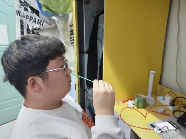 为了确保我们的健康安全,学校不仅为我们安排咽拭子核酸检测,还会每日发放鼻拭子采样器,同学们完成自测后将信息上报吉事办,每日重复,无一例外。