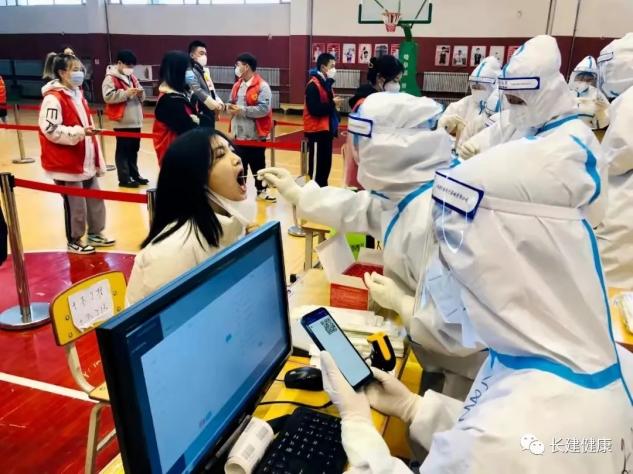 “请大家排好队,佩戴好口罩,保持一米间距,提前打开吉祥码……”在学校的核酸检测采样点,医务人员及志愿者认真准备核酸采样,无论是沐浴阳光,还是披星戴月,师生秩序井然全力配合每次核酸检测,大家还不忘向“大白”道一声:辛苦了!