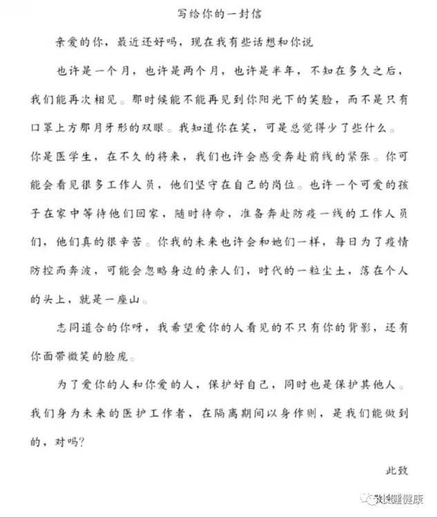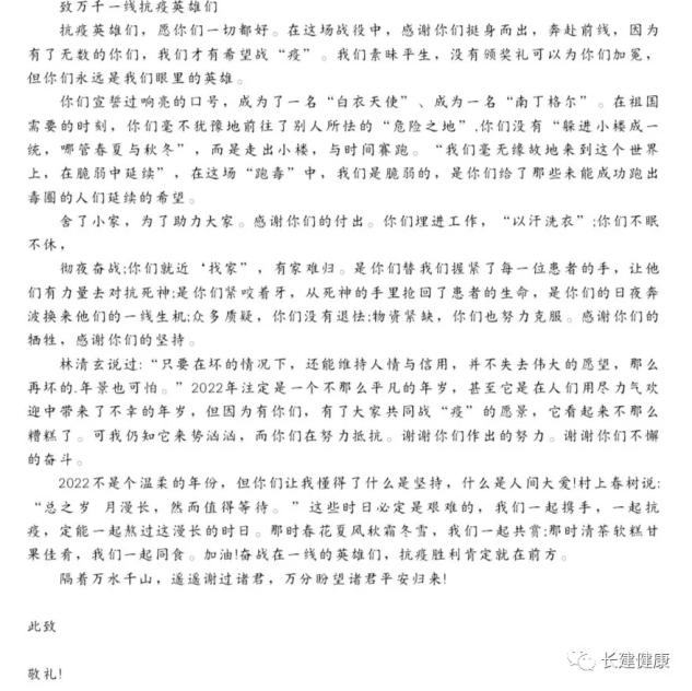 一场突如其来的疫情“倒春寒”,再次拉响了一场没有硝烟的战“疫”。新冠肺炎疫情牵动着每一位中国人的心,也牵动着每位长建学子的心。希望每一个人都能保持微笑,奋力前行,把点滴的力量汇聚成磅礴之势,助力疫情防控阻击战,迎来属于我们的明媚春光!