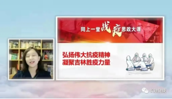 本次授课的主题是“弘扬伟大抗疫精神,凝聚吉林胜疫力量”。石瑛老师采用线上授课的方式,通过讲述“生命至上”“举国同心”“舍生忘死”“尊重科学”“命运与共”五种中国精神成为鼓舞吉林人同舟共济抗疫精神支柱的原因,围绕伟大的抗疫精神,体现出我国“以人民至上,以生命至上”的原则。石瑛老师在战“疫”素材中融入鲜活的思想政治教育理念,将思政课堂同抗疫“战场”有机结合,把全民抗疫素材转化为深刻而鲜活的思政教材,带来了一堂生动的抗疫思政大课。课堂结束后,同学们纷纷表示:“沉舟侧畔千帆过,病树前头万木春。在新冠病毒疫情期间,医务工作者们逆行向前,勇挑重担,用行动守护万家灯火,舍小家为大家的精神令我们深深感动,相信吉林也一定能在这场没有硝烟的战争中获得胜利,愿山河无恙,人间皆安。”