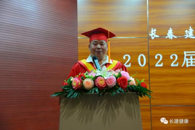 典礼最后,乐天使经理刘玉和以“厚德至善,让青春在奉献中焕发绚丽光彩”为题致辞,他在讲话中对全体毕业生提出三点希望:一是希望大家保持自信,满怀爱国奉献的决心,带着中国人的精气神,在与国家民族同呼吸共命运的进程中,开创精彩人生;二是希望大家勇于担当,坚守厚德至善的初心,用“健康人”特有的坚定、务实、气质,为这个社会、这个世界传递更多的光与热;三是希望大家恪守医德,厚植健康行民的仁心。“没有全民健康,就没有全面小康。”他希望同学们谨记:“博学而后成医,厚德而后为医”,在“技”与“德”之间,把“德”永远放在首位,成为一名温暖而有爱的健康守护者。将过往作为序章,从今天起勇敢肩负起时代赋予的历史重任,传承“厚德至善,健行康民”之精神,明爱国之心、立强国之愿、践健康之行,坚定前进信心,做有自信、有担当、有大爱的“健康人”。