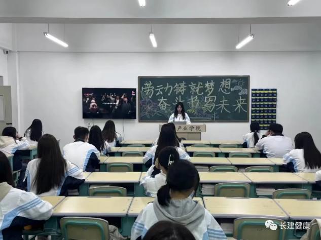 团会伊始,各班团支书围绕“劳动创造历史”、“劳动铸就璀璨文明”、“用劳动智慧造就伟大奇迹”、“踔厉奋发造就劳动佳绩”等展开讲述。紧接着,各班团支书为同学们播放《百年劳动者面孔混剪:致敬每一位奋斗者》视频片段,视频当中讲述了几位奋斗者的伟大拼搏故事,通过观看视频,使同学们明白了什么是劳动精神、工匠精神,并且教会了大家如何用劳动创造幸福,用实干成就伟业。观看结束后,同学们纷纷表示:“我们一定会在今后的劳动过程中更好地继承和弘扬劳动精神,树立正确的劳动观念,成为劳动教育的受教者和受益者,成为劳动精神的弘扬者和引领者。”
