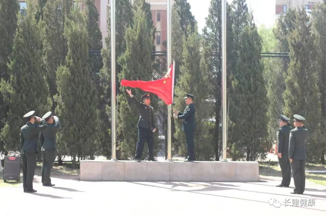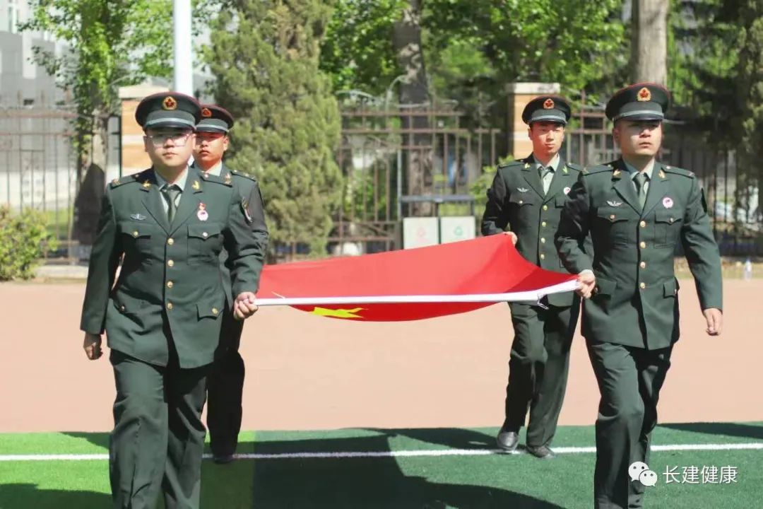 大会第一项,迎国旗,向国旗行注目礼。