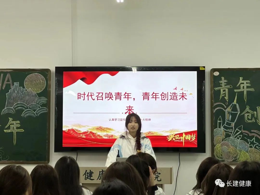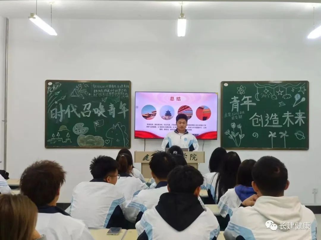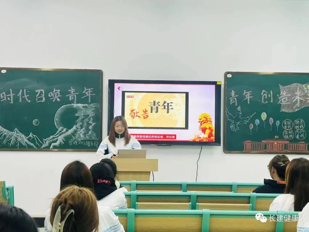 团会上,各班团支书为同学们讲述不同时代涌现出的优秀青年事例,随后,各班在团支书的带领下观看《敬告青年》视频片段,视频中向我们讲述了百年前一代代青年被唤醒救国意识,点燃了反帝反封建的革命火焰,也促进了马克思主义在中国的广泛传播,并且引领了“青年”群体登上了历史舞台。观看视频结束后,同学们纷纷表示:“作为新时代的青年,我们一定会砥砺前行,铭记历史,不忘初心,锤炼过硬本领,担当历史使命,在青春的赛道上跑出当代青年的最好成绩。”