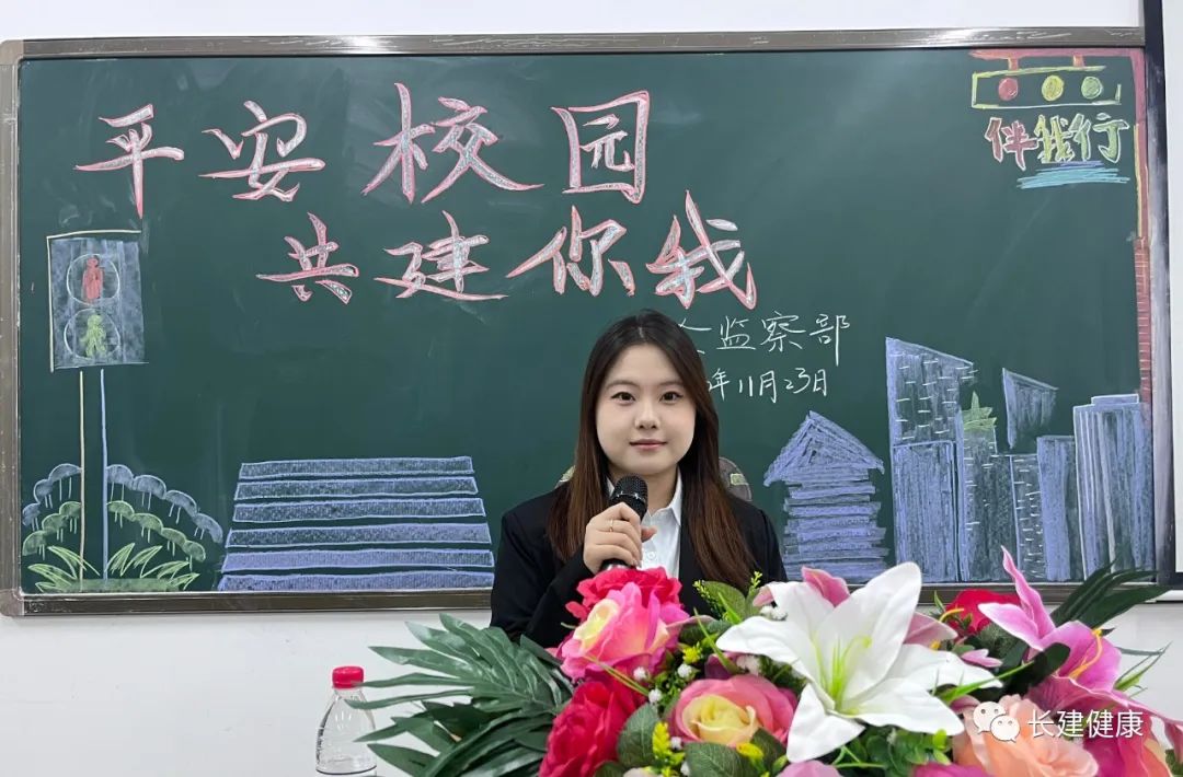 随后,姜紫文警官通过讲述一系列令人深思的校园暴力案例,向同学们展示了校园安全的重要性,在发生暴力事故后如何寻求帮助以及如何远离校园暴力。同时,姜紫文警官还强调了个人行为举止在维护校园安全中的重要性,鼓励同学们在日常生活中注意自己的行为,为维护校园安全做出自己的贡献。讲座的最后主持人总结了本次讲座内容并且认为认识和学习校园安全知识是学校安全保证的重要组成部分,校园安全问题应引起全体同学的重视。讲座结束后,同学们纷纷表示:“我们一定会积极主动地学习校园安全知识,提高安全素养,在今后的日子里要加强安全知识学习,做到居安思危,为共创平安校园牢牢树立“平安校园,你我共建”的思想。”