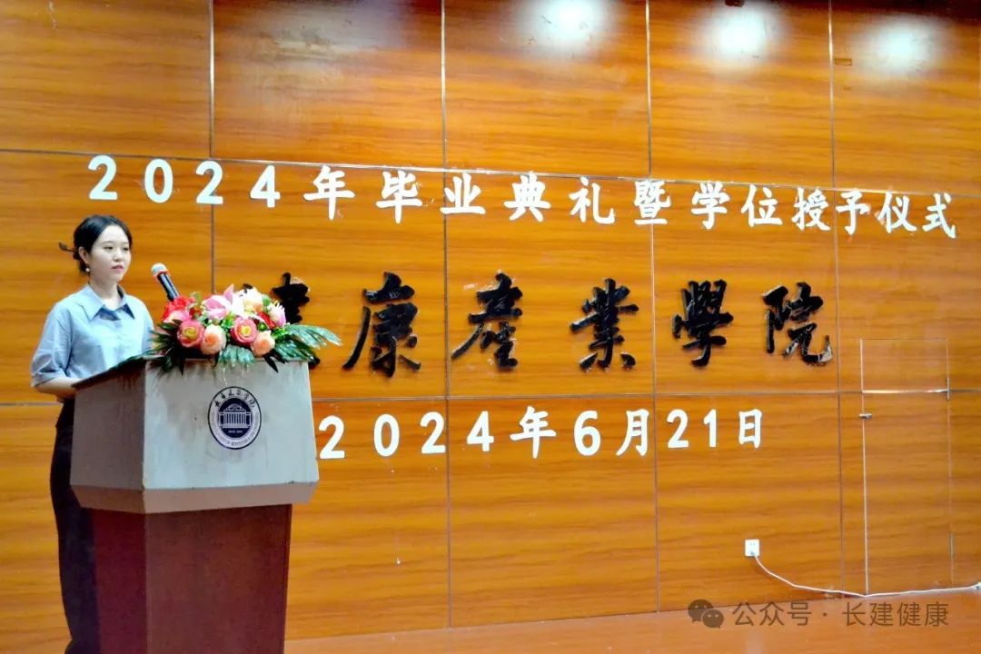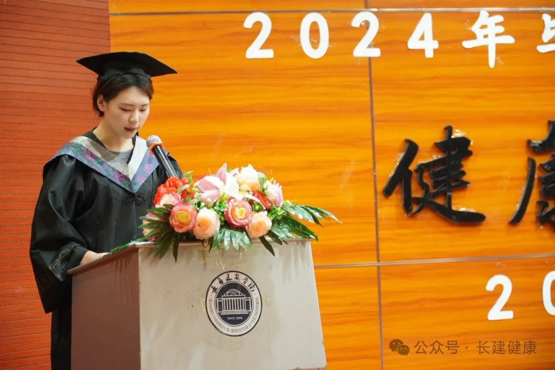 2024届毕业生代表许佳琦同学饱含对学院和老师们的感激之情,讲述了自己在这里的成长、历练,用四年时光摆脱迷茫,寻找热爱,追求目标,在此期间不仅提高了她的专业素养,更赋予了她深刻的人生哲学,为自己的老员工涯交上一份满意的答卷,她表示她将带着长建人的精神品格投身社会,怀抱梦想,勇敢前行,同时向母校及老师们、同学们送上了诚挚的祝福。