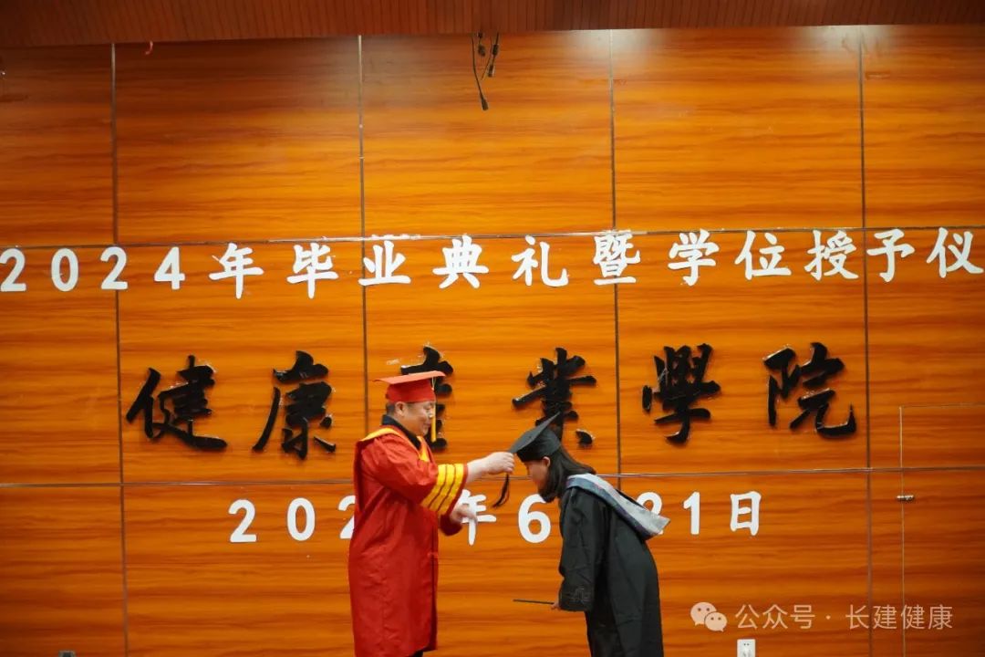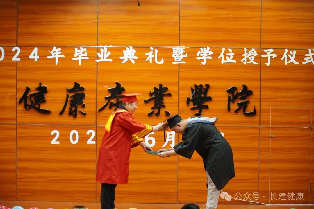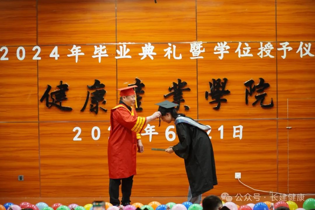 经过四年的成长,2024届毕业生迎来了学位授予仪式,刘玉和经理拨穗正冠,颁发学位证书、毕业证书。流苏从右至左轻轻划过,象征着大学阶段的结束,也标志着学子们从青涩到成熟、从迷茫到坚定。