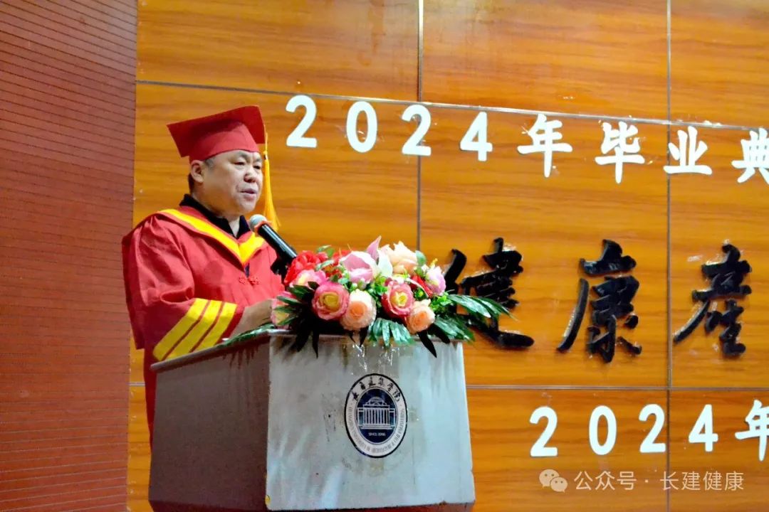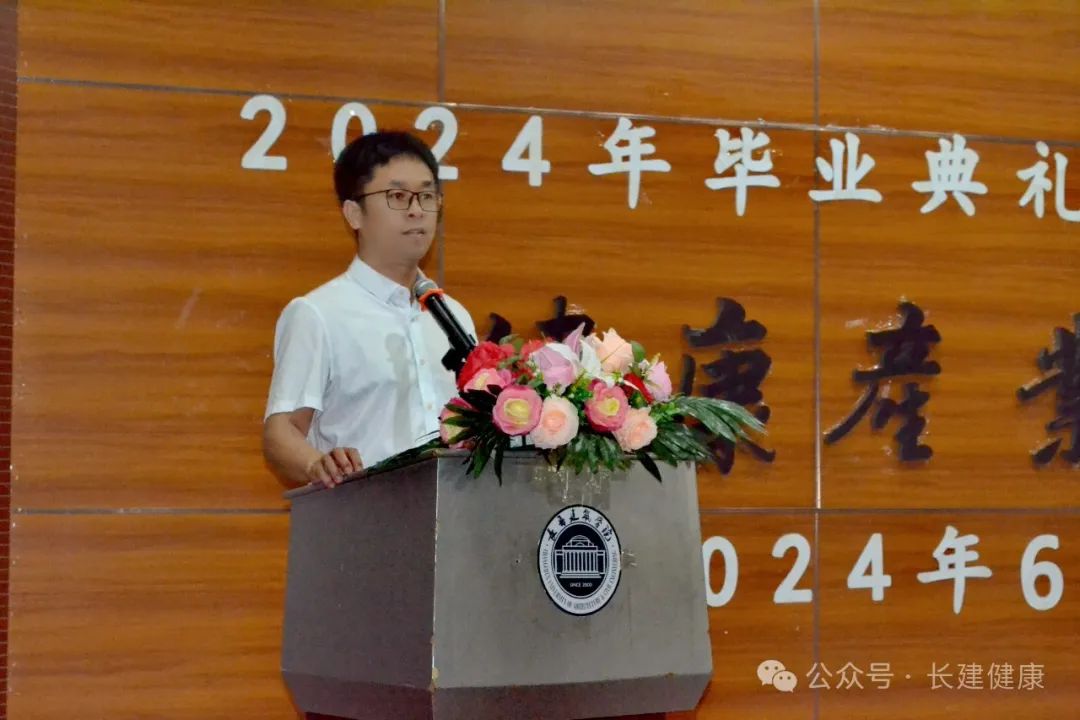 刘玉和经理代表学院向圆满完成学业的2024届学子表示热烈的祝贺,向为同学们的成长付出辛勤劳动的老师们表示衷心的感谢。刘玉和经理表示2024届毕业生是与伟大时代“双向奔赴”的毕业生,希望同学们牢记学院的培养,积极投身祖国建设的伟大实践中去,行稳致远,踔厉奋进,在奋斗中释放青春激情、追逐青春理想。最后,刘玉和经理送上真挚的临别寄语,母校永远是同学们的温暖港湾、坚强后盾、精神家园,祝愿各位毕业生前途似海、万事胜意。