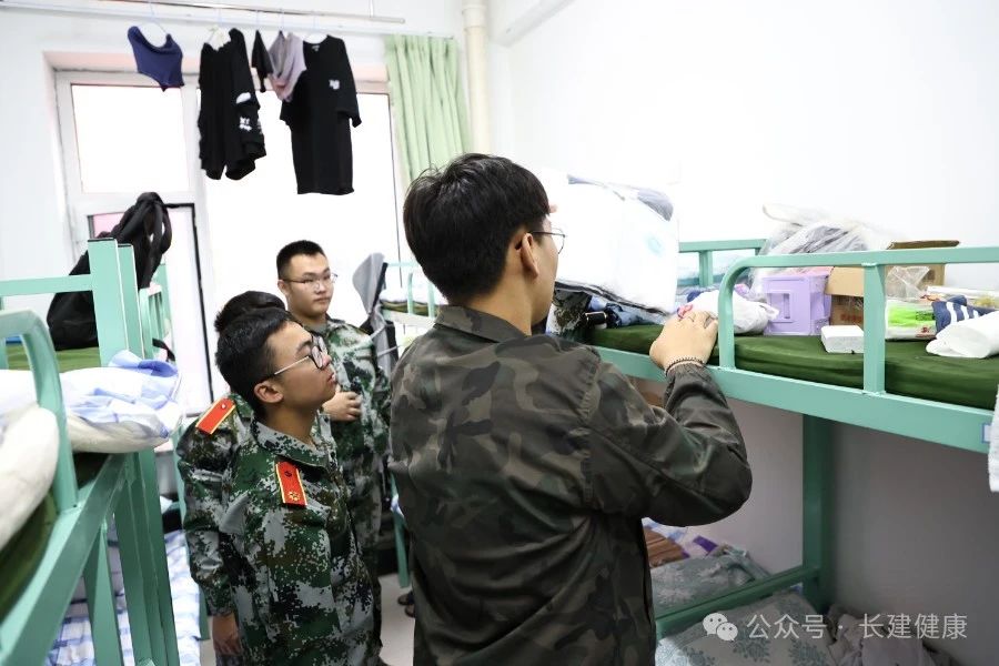 军训助理员进入寝室,向同学们讲解整理床铺的要领,并对宿舍物品的摆放、床铺整理的标准提出了明确的要求。同学们主动学习,积极实践,按照内务整理标准,严格进行内务整理和寝室打扫。