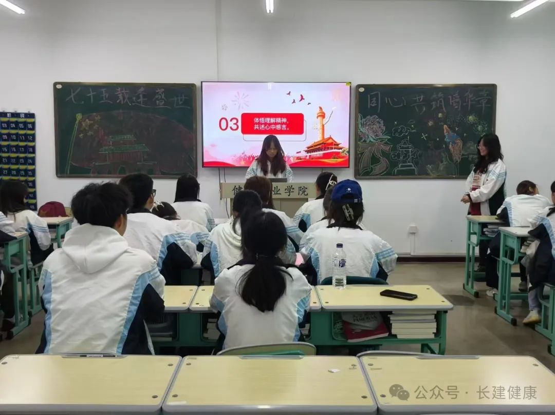 各班团支书为同学们讲述中华人民共和国成立七十五周年以来强国之路的历史背景、过程、影响,通过精彩的讲解,引领同学们深刻领略了祖国日新月异的繁荣景象与辉煌成就,随后团支书带领同学们一起观看有关中华人民共和国成立七十五周年以来强国之路视频,同学们仿佛穿越时空,亲眼见证了祖国从站起来、富起来到强起来的伟大飞跃,深深体会到了作为中华儿女的荣耀与自豪。同学们也非常主动,对自己观看完视频的感悟进行畅所欲言,有的同学以本次团会的主题进行了精彩的演讲,大力赞扬了祖国的繁荣昌盛,表明自己身为中华儿女应尽的责任与义务。团会结束后,同学们纷纷表示:“我们虽身处和平年代,但我们仍需坚定的理想信念,有面对困难不退缩的勇气,有为集体利益和个人理想奋斗的决心。红色故事教会我们的,不只是历史的记忆,更是精神的传承,一种永不过时的信仰和力量。”