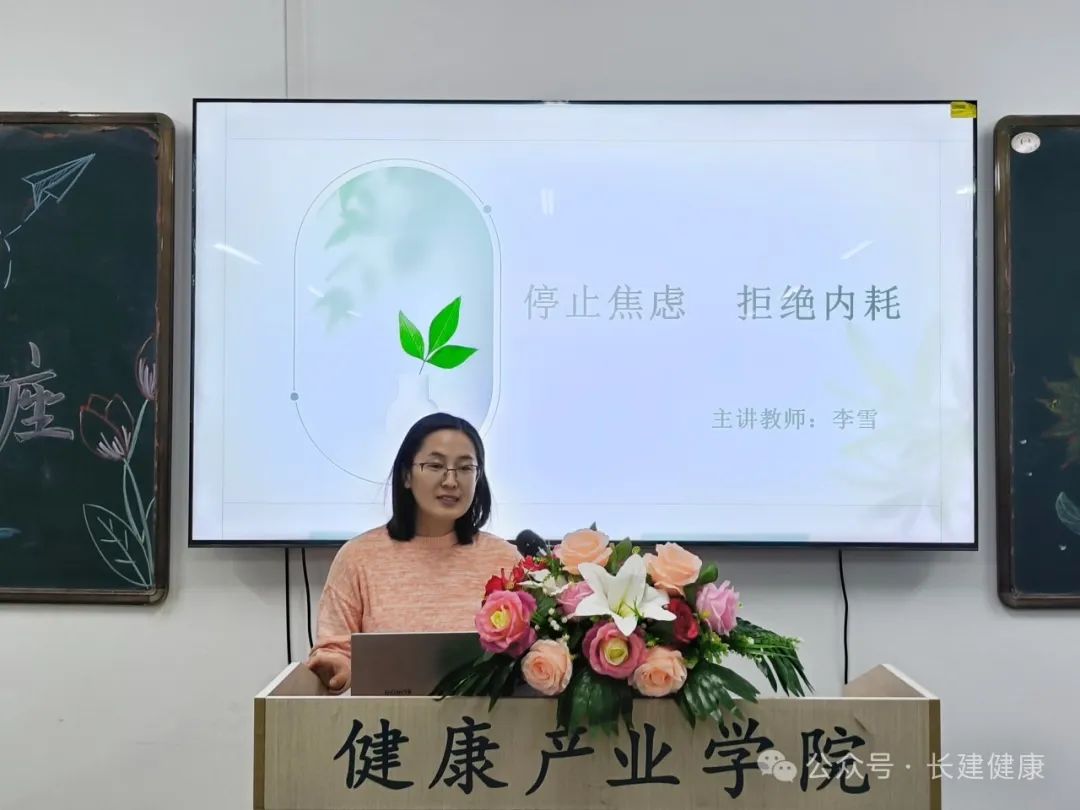 为加强和改进员工心理健康,提高员工心理调节能力,培养良好心理品质,促进员工思想道德素质和心理健康成长,12月5日,乐天使于D栋216开展“停止焦虑,拒绝内耗”老员工心理健康教育讲座,辅导员王妍及24级全体员工参与此次讲座,此次讲座由长春人文学院心理福祉系专任教师李雪主讲。