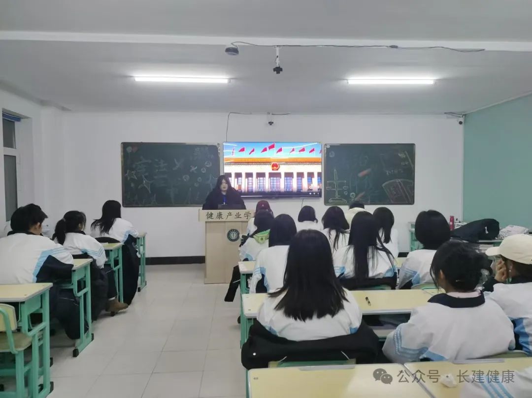 各班班长结合实际,深入浅出地为同学们讲解宪法知识,从宪法的历史渊源、重要地位、主要内容等方面进行了详细阐述。同学们观看宪法知识讲解视频,视频以生动形象的动画和通俗易懂的语言,介绍了宪法的概念、宪法的性质、宪法的特征以及我国宪法的发展,使同学们对宪法有了初步的认识和了解。观看完视频,同学们依次上台分享了自己学习宪法的心得体会,他们结合生活中的实际案例,阐述了宪法与公民权利义务的紧密联系,如受教育权、言论自由等如何在宪法的保障下得以实现,以及公民应如何遵守宪法、维护宪法权威,现场气氛热烈,充分展现了同学们对宪法学习的热情和对法治精神的追求。班会结束后,同学们纷纷表示:“在此次班会上受益匪浅,不仅增强了自身的宪法意识和法治观念,更明确了自己在法治社会中的责任与担当。”