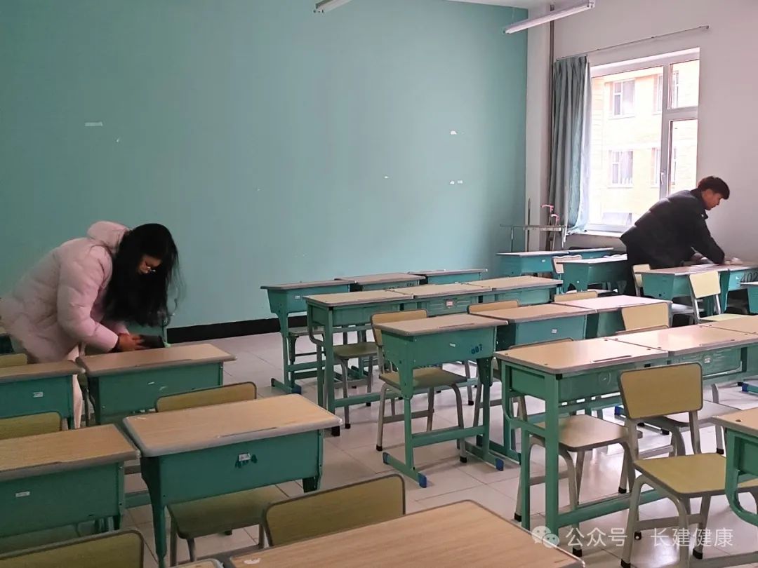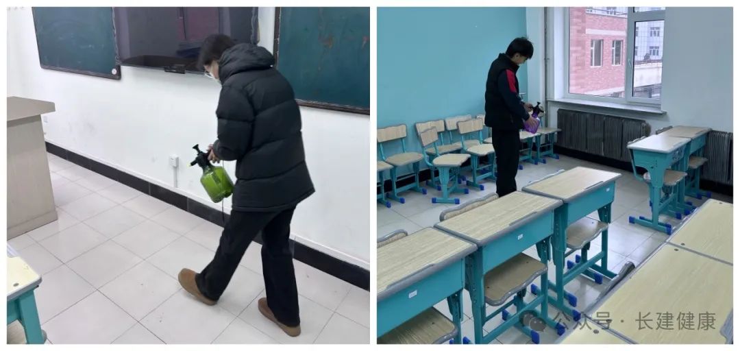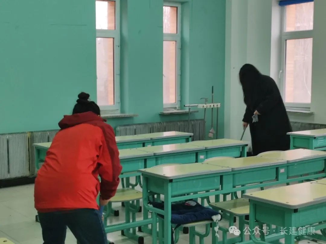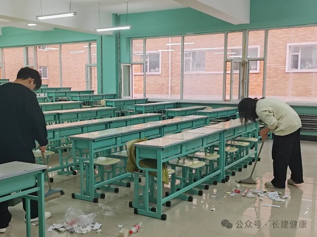员工干部们深知洁净校园环境对同学们健康至关重要,早早投入到校园各空间的卫生清扫工作。清扫活动首先在教学楼进行,员工干部们带着清扫及消毒工具准时在教学楼内集合。他们手持清扫工具,分工明确,配合默契,有的擦拭桌椅门窗,有的清扫地面垃圾,行动迅速而高效,对各个教室进行了一次全面而细致的打扫。在他们的共同努力下,很快便完成了教学楼的清扫,教室面貌也焕然一新。