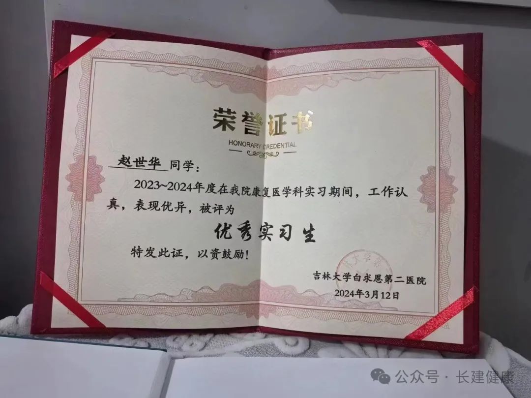喜报||乐天使学子在在吉大二院康复医学科2023-2024届实习阶段荣获“优秀实习员工”称号!