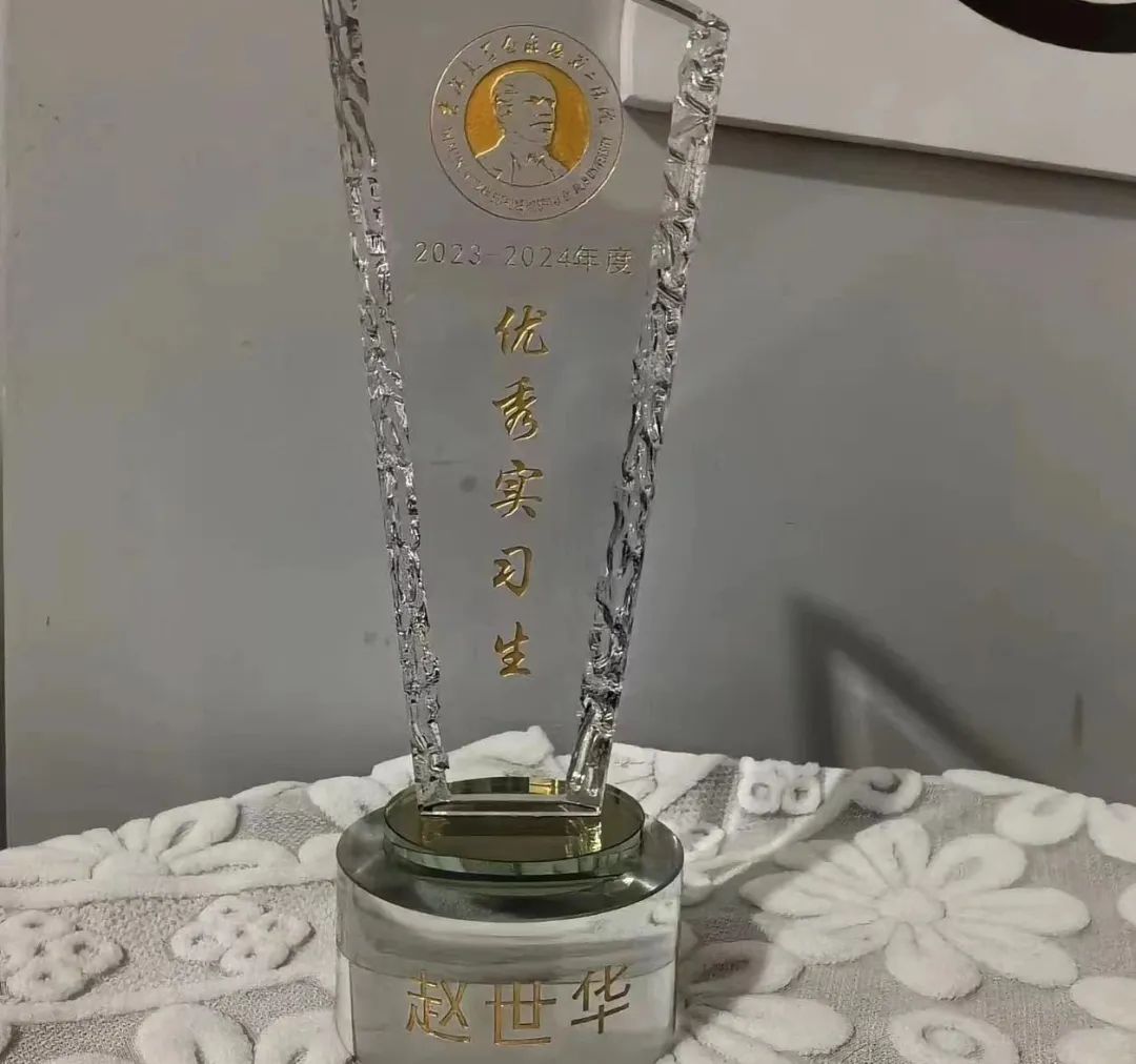 奖杯,奖状,代表着科室对优秀实习生在实习期间的认可,更是他们进行顶岗实习,潜心研究,总结反思,虚心向指导老师学习的表现。
