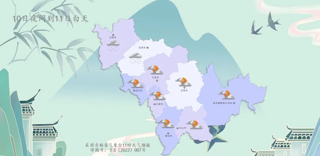 今天夜间到明天白天,全省晴转多云,白城、松原有小雨。