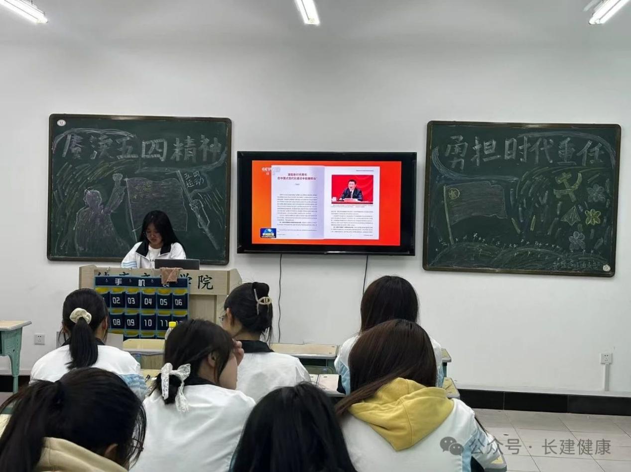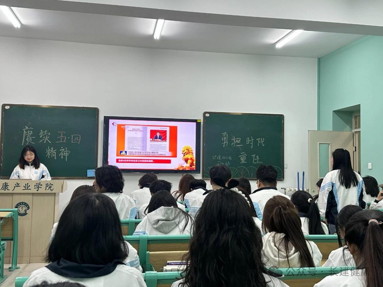 全体同学起立,怀着崇敬之情,奏唱《光荣啊,中国共青团》。各班团支书向同学们讲述总书记对全国广大青年寄语,引出活动主题,激发同学们参与热情,进而收获属于自己的深刻感悟,并邀请几位团员代表上台介绍五四运动的历史背景、过程、意义和五四精神的内涵,让团员深入了解五四运动的重要性和时代价值。由团支书带领观看《激励新时代青年在中国式现代化建设中挺膺担当》,全体团员起立,面向团旗,重温入团誓词,坚定理想信念,增强团员意识,进一步明确了自己的责任使命,表示要以更加饱满的热情和更加昂扬的斗志,投身到学习和工作中去。团会结束后,同学们纷纷表示,要向优秀榜样学习,立足本职岗位,努力拼搏,创造出无愧于时代的青春业绩。
