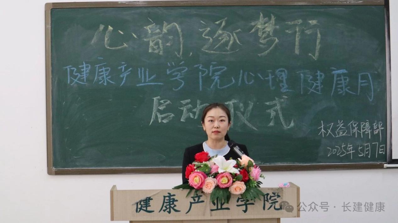 王研老师发表热情洋溢的致辞,强调了心理健康对于每个人成长成才的重要性,鼓励同学们要学会关爱自己,珍惜生命,享受生活中的每一个美好瞬间。王老师详细解读心理健康月活动方案,包括主题团课活动,海报大赛,素质拓展活动以及心理知识竞赛等。主持人带领同学们一起合唱了歌曲《世界赠与我的》,让同学们对未来充满了希望。启动仪式结束后,同学们纷纷表示:“我们将以饱满的热情积极参与各项活动,期待通过这些丰富多彩的实践体验,系统提升认知能力,掌握科学的情绪调节与压力管理方法。未来,我们会更加关注自身心理健康,以更加乐观从容的心态,勇敢迎接学习和生活中的每一个挑战。”