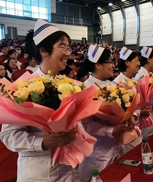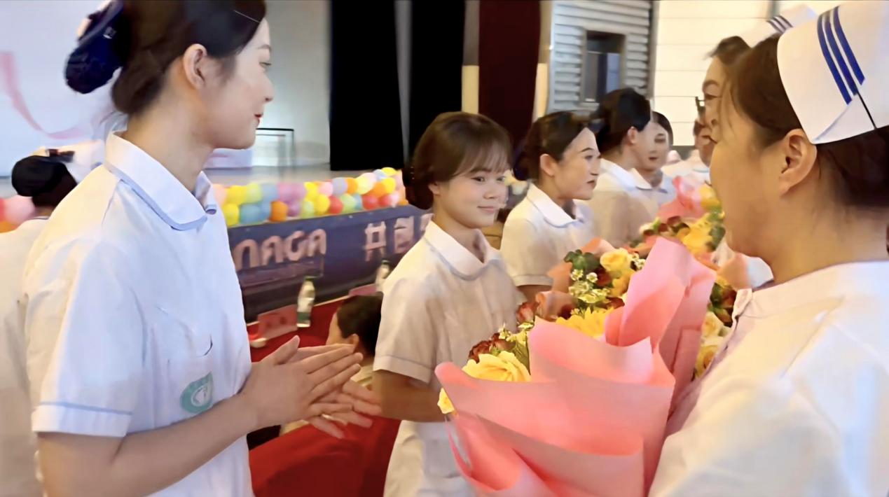 全体护生庄严宣誓完毕后,在这个特殊的日子里,莘莘学子为辛勤工作的护理前辈,献上一束圣洁的鲜花,以表达学子心中无限的敬意,也致以最深的节日问候。